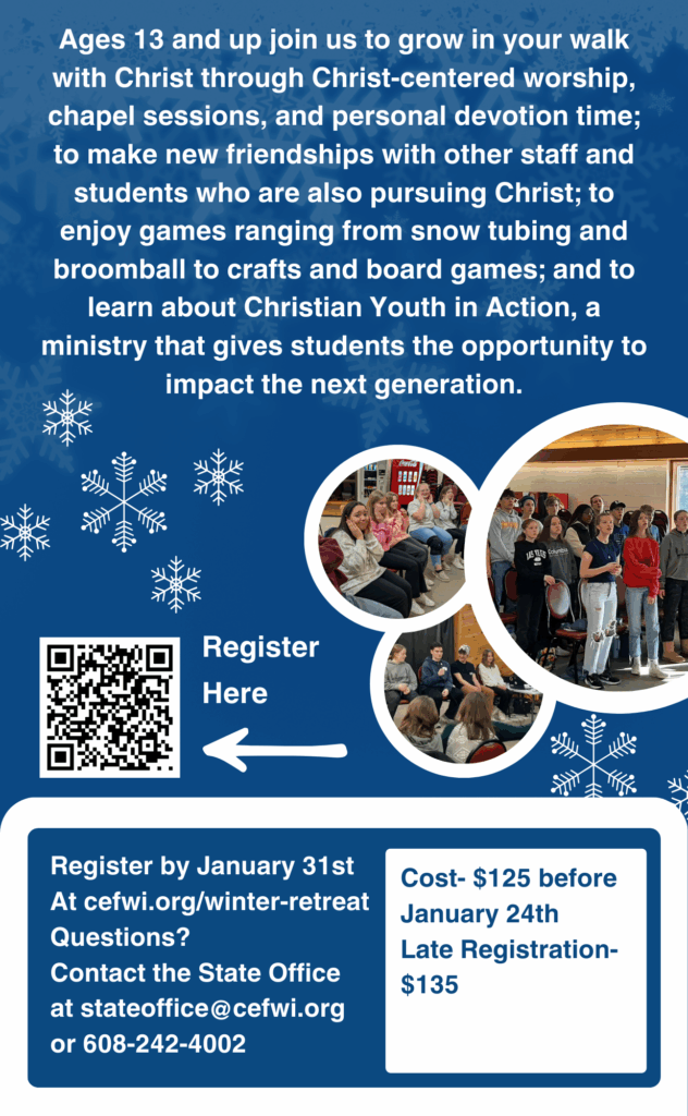 Winter Retreat is my favorite time of the year! I look forward to the weekend I can spend visiting with my camp friends and having fun. I also look forward to the great sermons…, as well as the info about the numerous new opportunities in CYIA!